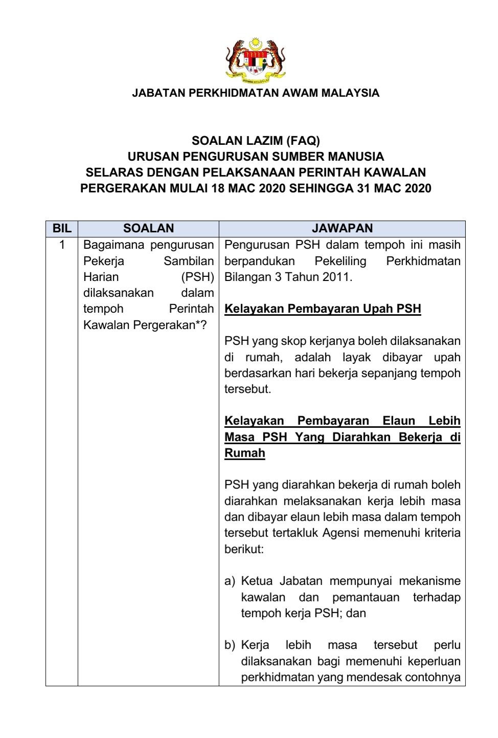 Tuntutan elaun lebih masa psh. Yang boleh dibayar elaun lebih masa. Tarikh kemaskini 22 mac 2021 08:54 am. Kerajaan malaysia pekeliling kemajuan pentadbiran awam. Pekeliling perbendaharaan bil.2 tahun 2021 1 file(s) 358 downloads.