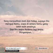 Read and learn surah mulk 67:2 to get allah's blessings. Karena kematian itu adalah tanda dan alamat kebinasaan yang paling nyata, walaupun seseorang terkenal dan memilki harta yang begitu banyak namun akhir dari segalanya adalah. Ayat tersebut mengingatkan bahwa kematian merupakan penunduk manusia. ٱلَّذِى خَلَقَ ٱلْمَوْتَ وَٱلْحَيَوٰةَ لِيَبْلُوَكُمْ أَيُّكُمْ أَحْسَنُ عَمَلًا ۚ وَهُوَ ٱلْعَزِيزُ ٱلْغَفُورُ. اۨلَّذِىۡ خَلَقَ الۡمَوۡتَ وَالۡحَيٰوةَ لِيَبۡلُوَكُمۡ اَيُّكُمۡ اَحۡسَنُ عَمَلًا ؕ وَهُوَ الۡعَزِيۡزُ الۡغَفُوۡرُۙ.