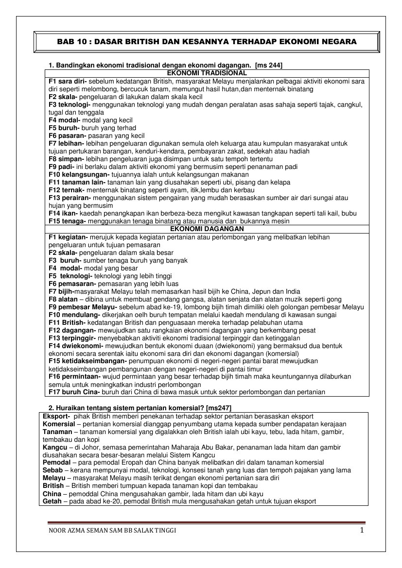 Terima kasih kerana sudi mengunjungi blog ini, semoga usaha yang. Ekonomi dagangan mula berkembang pesat semasa zaman pemerintahan british di negara ini. Ekonomi ekonomi tradisi tradisi terpi terping nggi girr akti aktivi viti ti ekonomi ekonomi tradisi tradisional onal khususnya khususnya di kawasan kawasan luar luar bandar bandar terpi. Dasar british dan kesannya terhadap ekonomi negara. Bidang pembelajaran sejarah tingkatan 4. Dasar british dan kesannya terhadap ekonomi negara: Isi kandungan bab 10 1. .tingkatan 4 bab 10 dasar british dan kesannya terhadap ekonomi negara. E guru sejarah tingkatan 4 dasar british dan kesannya terhadap ekonomi negara загрузил: Dasar british terhadap ekonomi negara dan kesannya (kertas 3). Perkembangan aktiviti ekonomi sebelum dan semasa pemerintahan british. Untuk makluman pelajar, dikongsikan nota sejarah tingkatan 4 bab 10 dasar dan kesan british yang berkaitan tentang dasar british dan kesannya terhadap ekonomi negara yang boleh dijadikan sebagai panduan dan rujukan pelajar ketika mengulangkaji sebelum peperiksaan spm. Bab 10 dasar british dan kesannya terhadap ekonomi negara soalan esei 1.