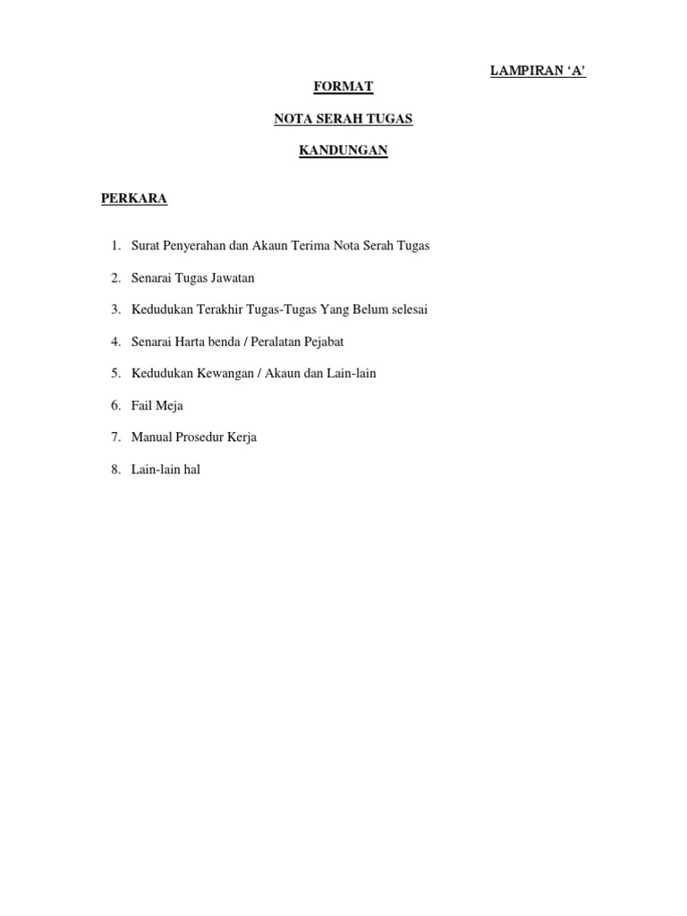 Nota Serah Tugas 2019 : Doc Contoh Nota Serah Tugas Wkj 238 Academia Edu - Senarai harta benda/peralatan pejabat 5.
